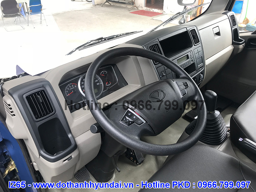 Nội thất xe IZ65 khá hiện đại, bước vào cabin là cảm nhận ngay được không gian rộng rãi với 3 ghế ngồi bọc nỉ, ghế lái trang bị chỉnh điện, dây đai an toàn khá đầy đủ. Tablo với các nút bấm linh hoạt dễ dàng sử dụng khi đang điều khiển ra. Ngoài ra có khá nhiều hộc để đồ tiện lợi cho tài xế và lái phụ.