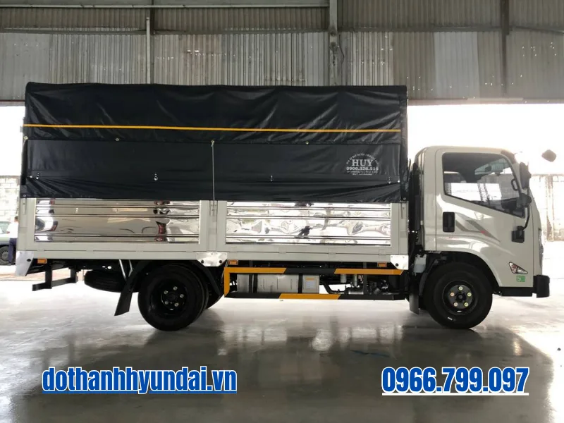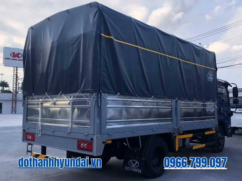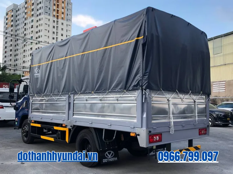 Về quy cách đóng thùng, nhà máy Đô Thành áp dụng các tiêu chuẩn chất lượng khắt khe nhất. Thùng mui bạt tiêu chuẩn được trang bị sàn thép dày chống trượt, chịu được áp lực va đập cao khi xe nâng đẩy hàng vào. Khung xương vách và kèo mui được hàn nối gia cường chắc chắn, toàn bộ bề mặt kim loại đều được xử lý nhúng sơn tĩnh điện chống ăn mòn, rỉ sét và bong tróc dưới điều kiện thời tiết nhiệt đới khắc nghiệt của Việt Nam. Lớp phủ phía trên sử dụng bạt simili cao cấp chống thấm nước tuyệt đối, đảm bảo an toàn tuyệt đối cho hàng hóa bên trong.